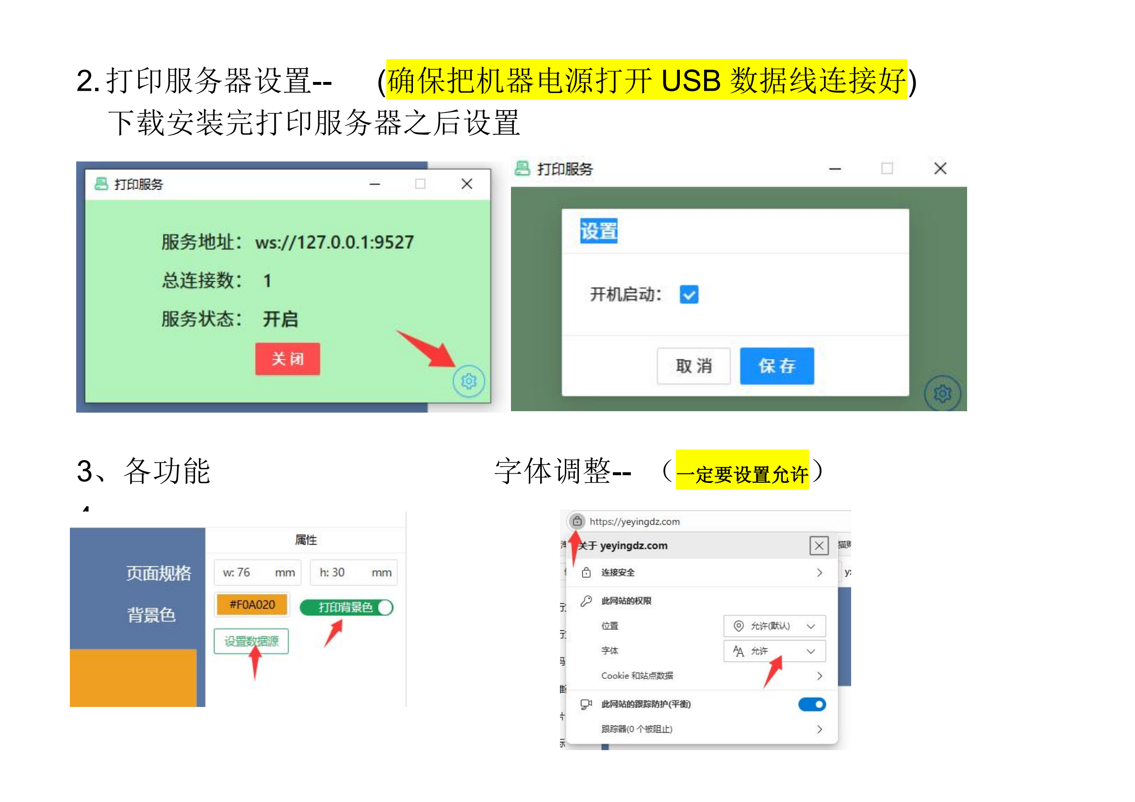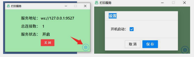 Print Server Settings -- (Make sure the machine is powered on and the USB data cable is properly connected)After installing the print server, open the settings to configure it